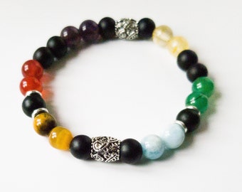 Men S Chakra Bracelet Matte Gemstones And Ebony Bracelet Lovepray Jewelry
